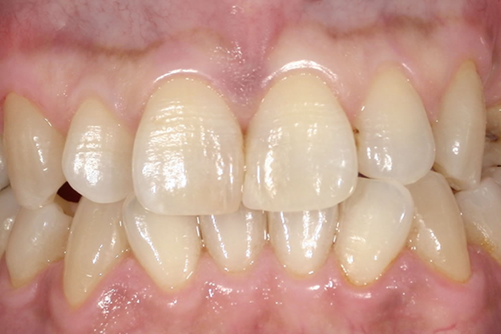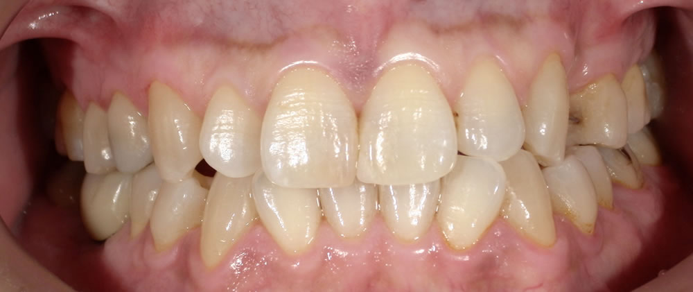 こちらの患者さんは「前歯の間の虫歯があり、黒ずんでいるのが前から見て気になる」ということで当院を受診されました。