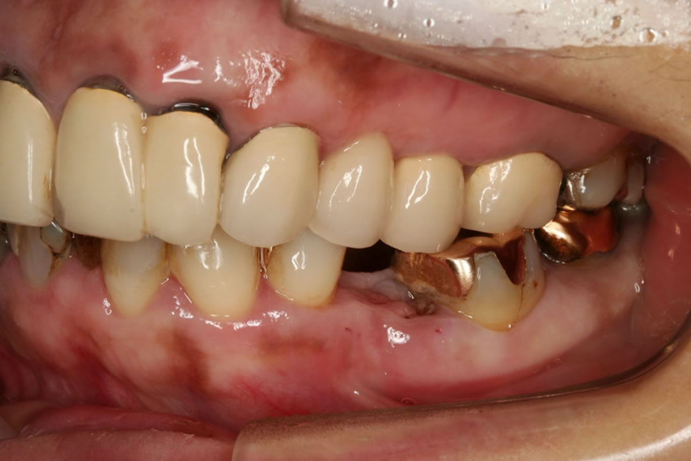 こちらの患者さんは、左下の歯が折れたことを主訴に来院されました。「見た目をきれいにしたい」「長期的に歯が長持ちするように治したい」とのご希望がありました。